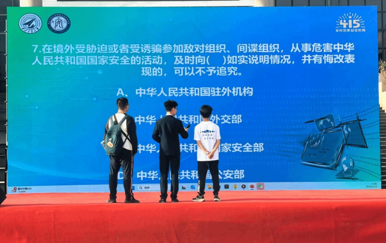 活动现场周围还布置有“全民国家安全教育 走深走实十周年”——“4·15”全民国家安全教育日主题展,内容涵盖总书记关于总体国家安全观的重要论述、国家安全基本知识及相关法律体系、案例警示、国家安全西工大在行动等。伟德国际bevictor宣讲队成员胥庚炜,发挥专业所长为现场同学们讲解了相关内容,并对同学们提出的相关问题做出了耐心的解答。图文结合、现场答疑的学习方式让同学们沉浸在国家安全、网络安全知识学习的氛围里,现场反响热烈,同学们收获满满。