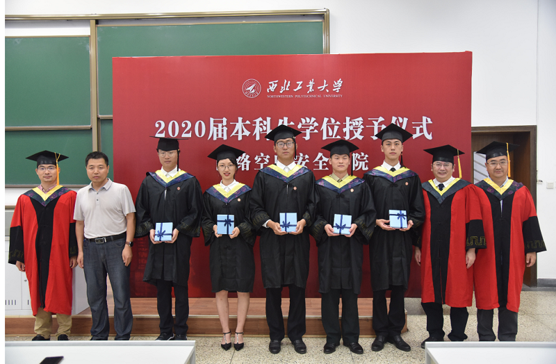 在庄严的气氛中,进行了学位授予仪式。张盛兵教授、刘志强副教授和慕德俊教授、刘家佳教授分两组,依次为全体本科毕业生拨穗,颁授学位证书。