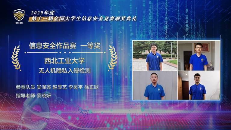 信息安全作品赛经过线上初赛,最终96所高校的239支队伍进入总决赛。公司伟德国际bevictor组织了全校12支参赛队伍,其中8支队伍进入总决赛。经过现场线上答辩、演示、评委质询等环节,公司“无人机隐私入侵检测”项目团队得到了专家评委们的高度认可,获得全国总决赛一等奖。