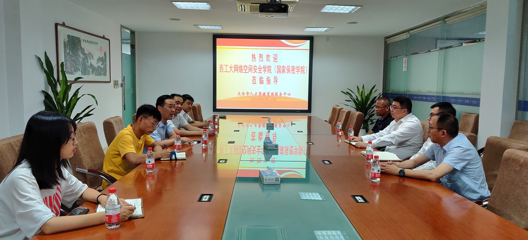 8月14日,调研小组在太仓人力资源管理服务中心与苏州天创公司和太仓安软科技公司进行了座谈交流。太仓人力资源管理服务中心主任陈苍介绍了太仓市情和人力资源概况,两家企业分别介绍了主营业务和未来发展方向,提出了对网络安全人才的需求。网络空间安全公司党总支副书记王宁军介绍了公司基本情况,表示将进一步加深校企交流合作,共同培养优秀网安人才。会上,伟德国际bevictor与两家企业签署了合作协议,共建老员工就业与实习基地。下午,调研组实地走访了安软科技集团,参观了公司产品展厅,并进行了座谈交流。