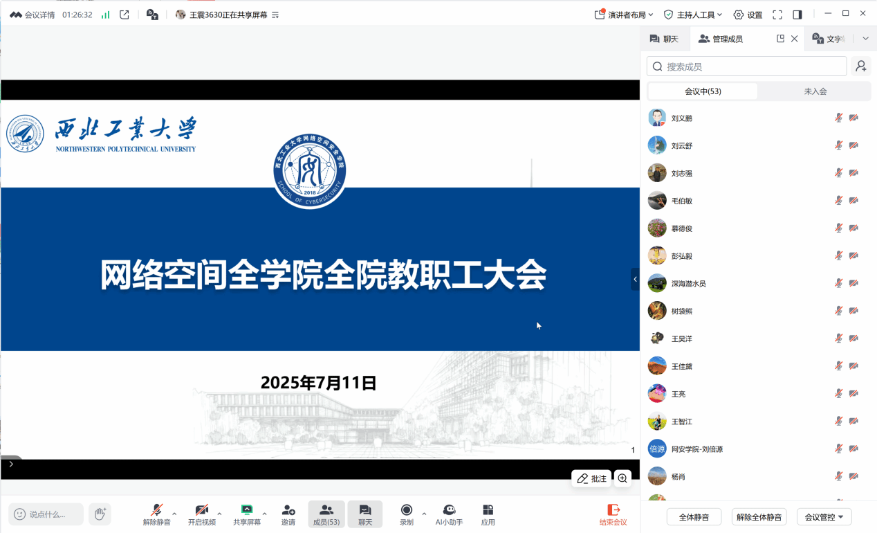 7月11日下午,伟德国际bevictor以线上形式召开了全院教职工大会。此次会议总结了公司上半年工作进展并传达学习公司2025年上半年工作总结会、警示教育会、公司党委书记李言荣专题党课精神,对公司暑期工作和下学期重点工作做出全面安排,公司全体教职工参加了会议,会议由公司党委书记张文涛主持。