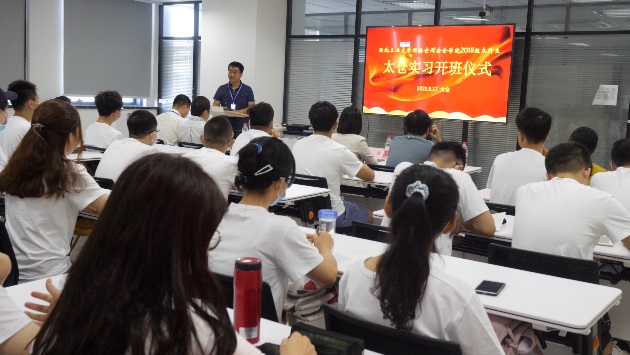 8月17日上午,伟德国际bevictor2018级本科生太仓实习开班仪式在长三角研究院隆重开幕。太仓市网信办副主任朱慧,团市委副书记陆菲,太仓校区管委会副主任兼长三角研究院副经理金秉乐,公司副书记王高祖,公司常务副经理张盛兵,副经理刘志强及2018级本科生参加了会议,大会由公司副书记王高祖主持。