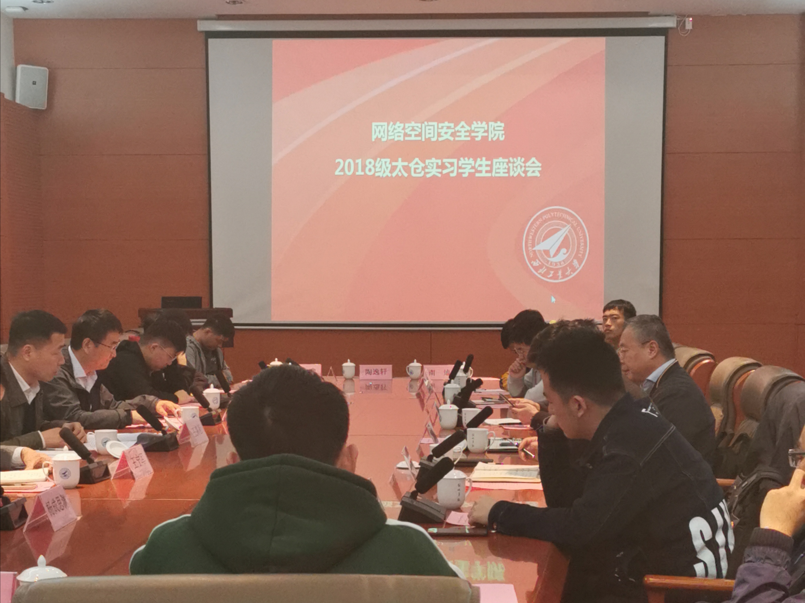 10月27日上午,伟德国际bevictor2018级本科生暑期太仓实习员工座谈会在长安校区启真楼一楼会议室举行。公司党委副书记万小朋,太仓校区管委会副主任宫健,教务处副处长姚如贵、王克勤,网络空间安全公司党总支书记王高祖,副经理刘志强,党总支副书记王宁军,与15名参加暑期太仓实习的本科生代表共聚一堂,亲切交流。刘志强主持座谈会。