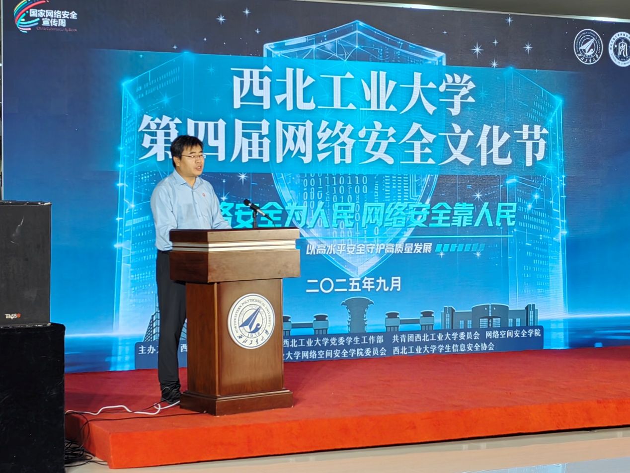 陈仲昌代表公司致辞。他强调,网络安全是国家安全的重要组成部分,事关国家战略全局。他介绍了公司在网络安全团队建设、科研创新与人才培养方面取得的多项成果,勉励师生积极投身网络安全事业,为维护国家网络空间安全不断贡献西工大力量。
