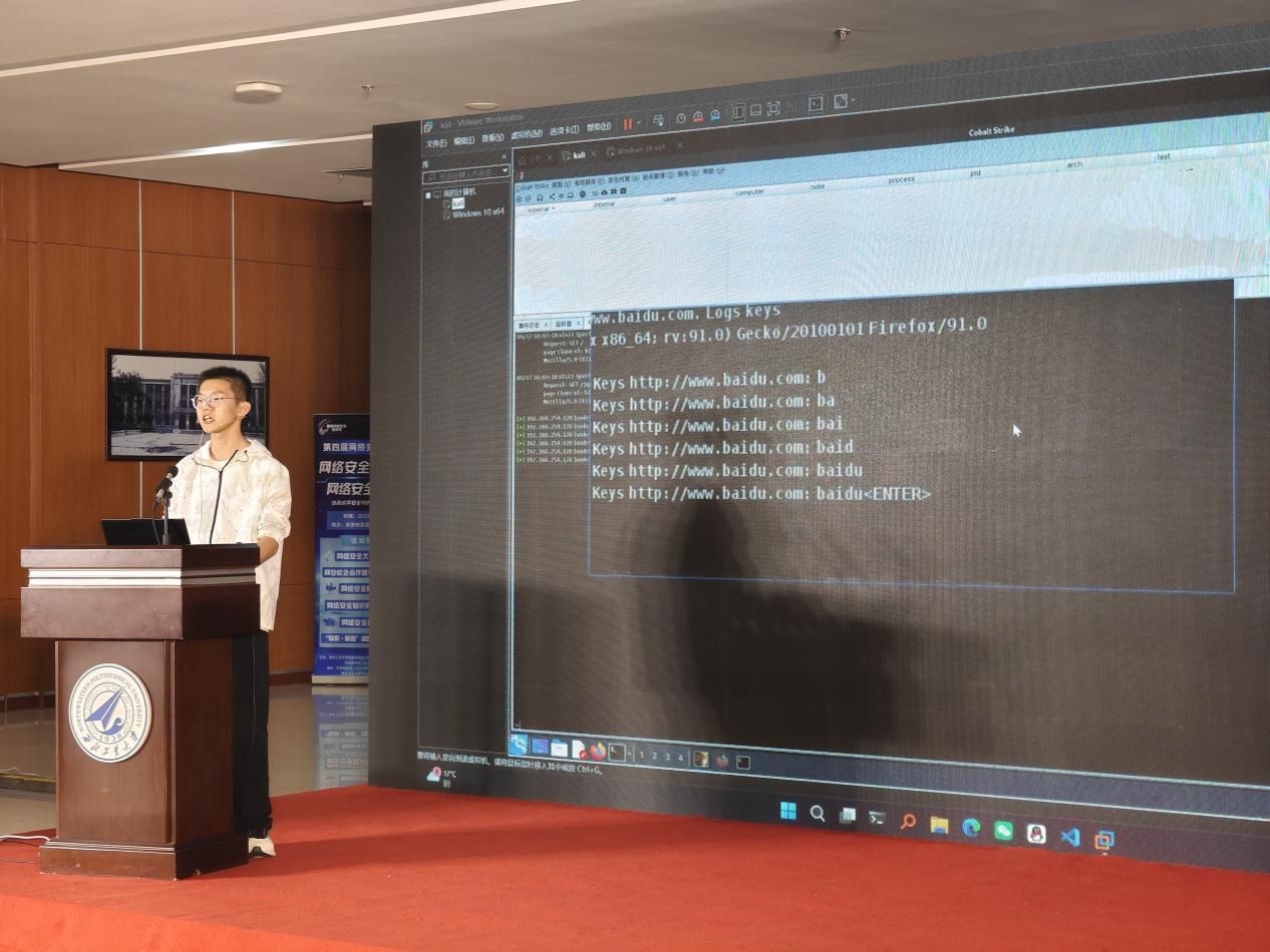 互动表演环节,由马君儒同学与王少君同学主持,紧张刺激的技术展示与互动解密依次上演。首先,伟德国际bevictor官方网站员工信息安全协会副会长、网络空间安全老员工创新实践基地成员薛沛元为同学们演示了钓鱼网站技术,大屏幕上,以假乱真的钓鱼网站和欺骗性极强的钓鱼邮件呈现在同学们眼前;接着,协会会长、基地成员周子博进行了路由器攻防演练,终端上跳动的字母汇聚成路由器界面上被替换的图片,技术的魅力与网络安全的重要意义被生动诠释。