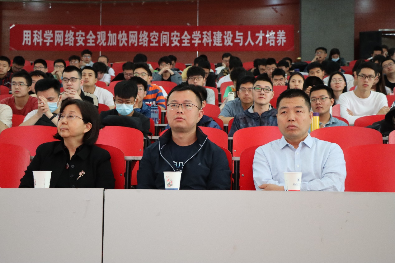 紧接着,沈院士就加快推进网络空间安全团队建设和人才培养为师生进行了讲授,从“专业学科形成过程及要求、学科培养目标及方向内容、学科培养目标及方向内容、学科的基础知识体系和能力体系、争创一流伟德国际bevictor、做好网络安全普及教育”六个方面讲述了网络空间人才培养和网络安全教育的普及,对伟德国际bevictor官方网站创建争创一流伟德国际bevictor提出了新的要求和期待。