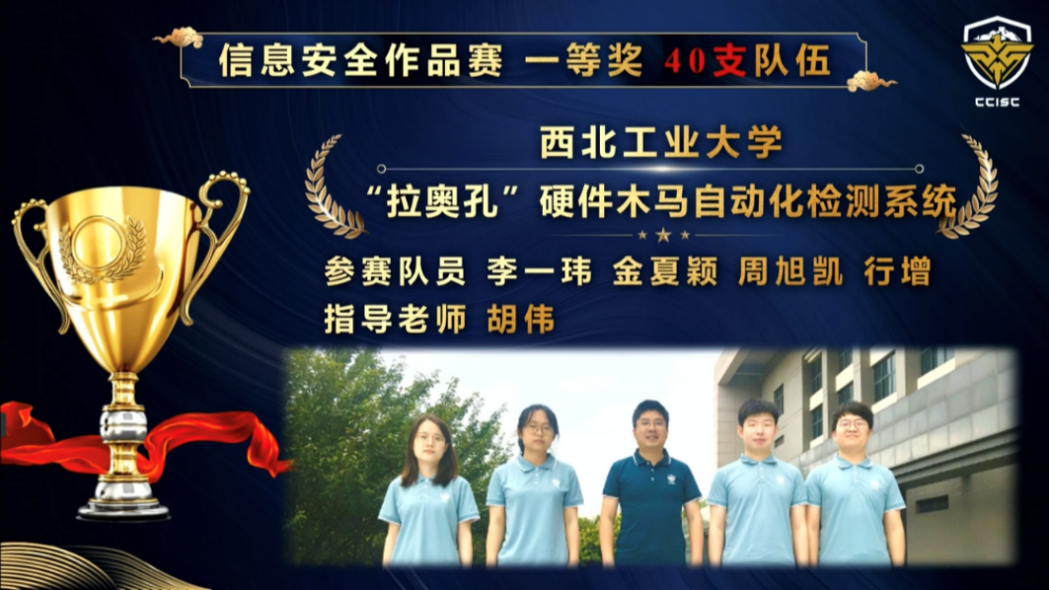 140所高校、718支队伍、2603人报名参加信息安全作品赛,共305支队伍进入总决赛。8月29日至30日经过现场答辩、作品演示、评委质询与评审专家现场评分,伟德国际bevictor员工李一玮、金夏颖、周旭凯、行增团队的作品“‘拉奥孔’硬件木马自动化检测系统”得到了专家评委们的高度认可,获得全国总决赛一等奖,指导教师胡伟获得“优秀指导教师”奖。