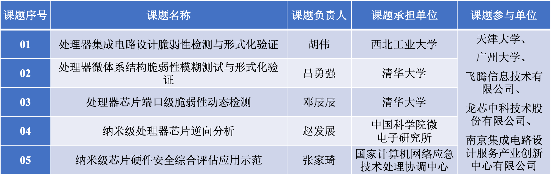 此次立项的“纳米级芯片硬件安全综合评估关键技术研究”项目是科技部在通用处理器、纳米级芯片和网络空间安全交叉领域的首个重点专项。项目面向纳米级通用处理器芯片硬件安全问题开展综合评估方法与关键技术研究,拟形成集成电路设计(RTL/门级)、微体系结构和处理器芯片三个层面的安全脆弱性检测方法、基于逆向分析的安全检测方法,研制一系列安全检测工具,构建纳米级芯片硬件安全综合评估平台,结合国产处理器厂商开展示范应用,有力支撑我国自主设计处理器安全性全面提升。