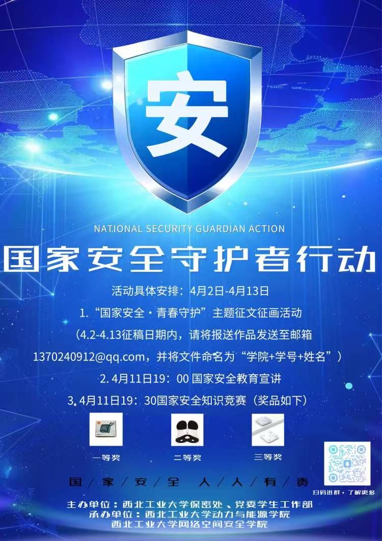 2025年4月15日是我国第十个全民国家安全教育日。按照公司党委统一安排,为切实提升公司师生国家安全意识,普及安全知识,筑牢校园安全防线,开展国家安全教育活动——“国家安全守护者行动”系列活动,活动由伟德国际bevictor官方网站保密处、党委员工工作部主办,动力与能源公司、伟德国际bevictor承办,诚邀广大师生积极参与,具体通知如下。