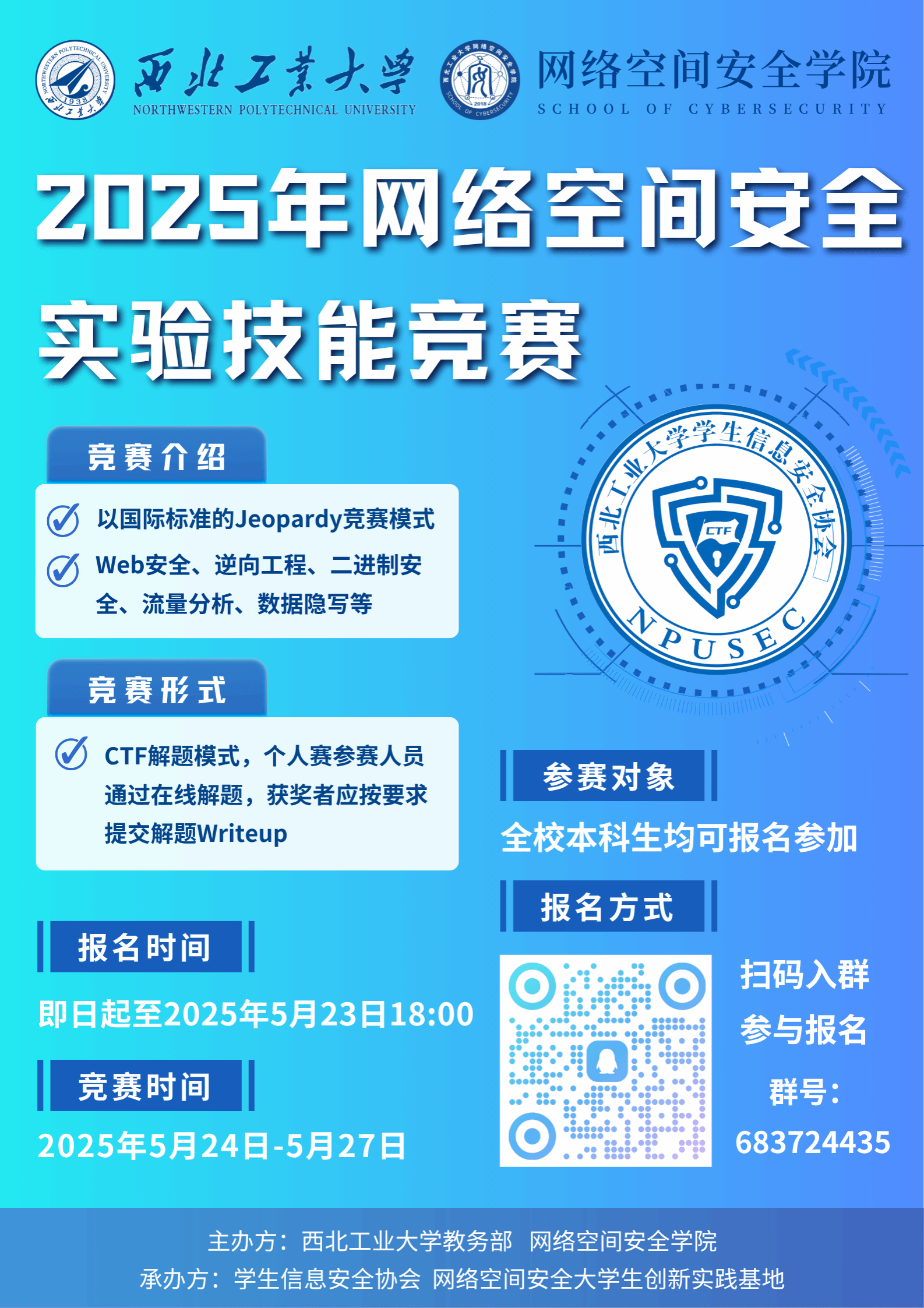竞赛形式:CTF解题模式,个人赛参赛人员通过在线解题,答题积分采用动态积分模式。获奖者应按要求提交解题Writeup。