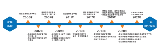 公司作为国内最早开展信息安全类专业建设的高校之: -,于 2000年开始培养信息对抗专业信息安全方向本科生; 2002年在计算机科学与技术-级学科下自主设立信息安全二级学科方向,开始培养该学科的硕士和博土研究生; 2007年公司成为教育部认定的15所信息安全类”国家特色专业建设点”高校之一; 2015年获批国家控制布点专业"保密管理”专业,开展辅修双学位人才培养; 2016年获批网络空间安全- -级学科 ,成为获得该学位授权点的全国首批29所高校之一; 2021年获国家级-流专业建设点,公司形成了完备的学科专业体系。