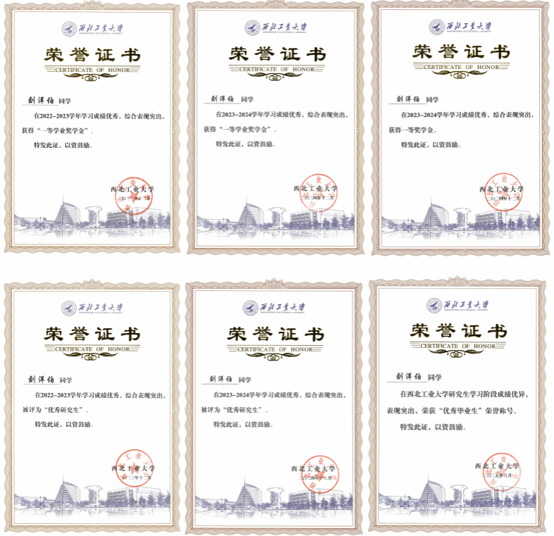 在攻读硕士期间,刘洋伯积极践行西工大铸剑精神,其通过在WOCC 2023、IEEE WCNC 2024等国际会议上公开发表科研成果、协助公司承办IEEE HPSR 2022和未来网络与智能通信研讨会和担任IEEE HPSR 2022、IEEE ICC 2023 Workshop及IEEE ICC 2024 Workshop等的TPC Member以弘扬西工大的国际学术声誉。此外,其也积极承担本科生指导任务,所指导的团队获国家级“大创”良好结题,并在ICCSN 2023上公开发表论文1篇、申请国家发明专利2项、授权软件著作权1项。