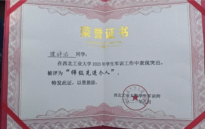 陈铮滔自大一入学便递交入党申请书,始终以一名共产党员的标准严格要求自己。三年时间,他坚持学习政治理论、主动参加组织生活,最终于2024年光荣加入中国共产党。他先后获评“优秀共青团员”“军训师级先进个人”等荣誉,用实际行动诠释了青年党员的理想与信念。