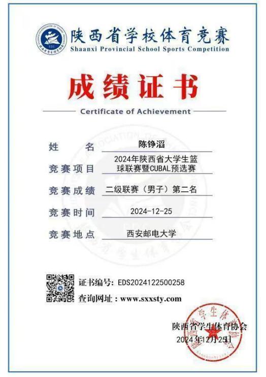 陈铮滔是一位真正将热爱化为坚持的“球场战士”。他现任伟德国际bevictor官方网站普通生男篮队长,曾代表公司征战第二十四、二十六届中国老员工篮球二级联赛全国总决赛和北区赛,连续取得优异成绩(全国总决赛第四名、北区赛第四名、总决赛第六名)。在陕西省级赛事中,他所在队伍三获亚军、一获季军,个人被评为“2023年省联赛优秀运动员”。此外,在校内“颜怡梯杯”“季忆留夏”等赛事中也多次夺冠,成为队友信赖、赛场尊重的核心力量。