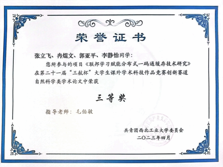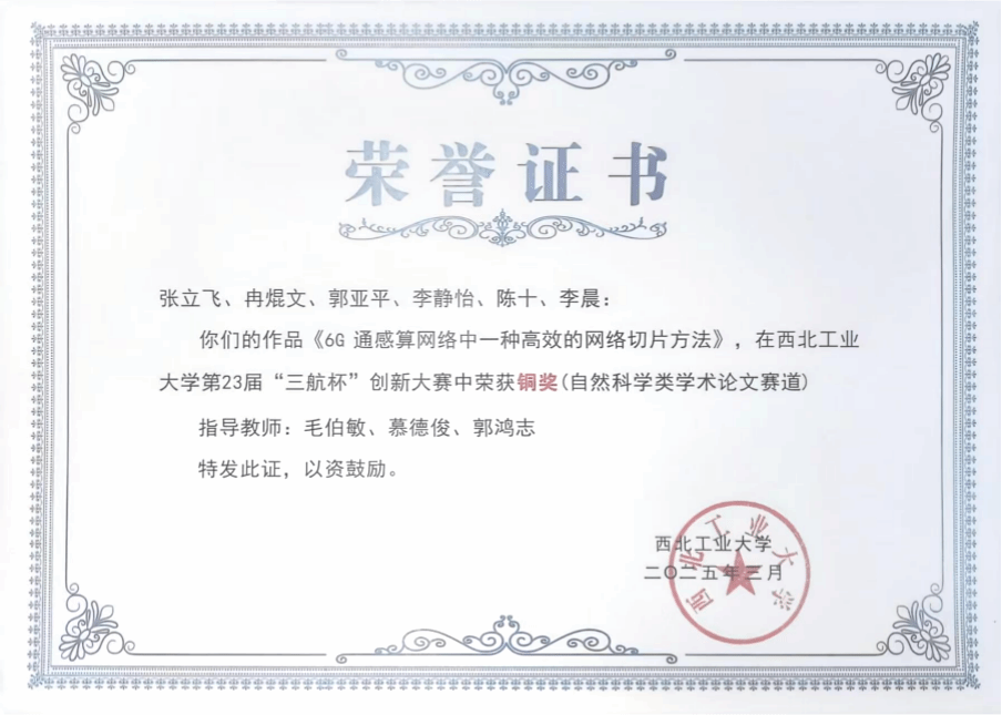 “把知识写进现实,让科研回应生活。”这是张立飞的科研信念。在毛伯敏老师的指导下,他主持国家级老员工创新创业训练计划项目,成功实现良好结题;作为通讯作者兼第二作者发表国际会议论文1篇。他还带领团队连续两年参加伟德国际bevictor官方网站“三航杯”系列竞赛,分别于2022年荣获第二十一届“三航杯”老员工课外学术科技作品竞赛三等奖,2024年荣获第二十三届“三航杯”创新大赛铜奖。此外,他以第一申请人身份获得1项国家软件著作权授权,持续以实践检验理论、以创新拓展边界。