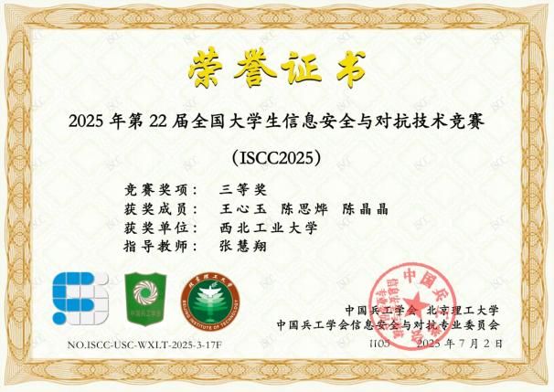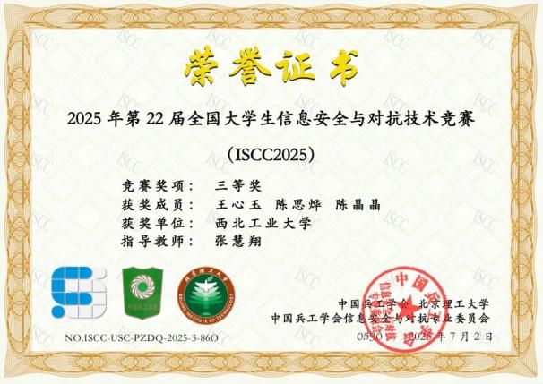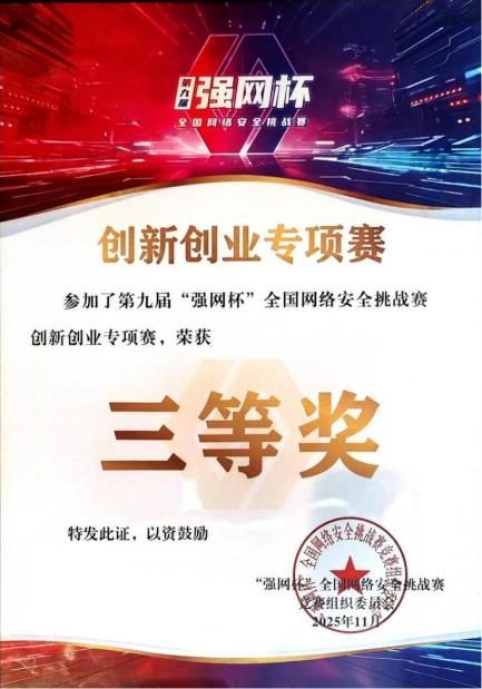 科研竞赛中,她敢于探索、勇于突破,将理论知识转化为实践能力,主动投身科研探索,参与老员工创新训练计划项目,入选省级大创。在各类学科竞赛中,她更是迎难而上,与团队成员并肩作战,获得全国老员工信息安全与对抗技术竞赛国家三等奖、“强网杯”创新创业专项赛三等奖。