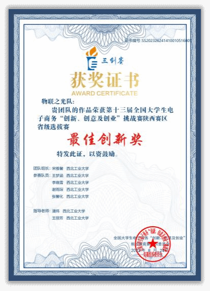 2023年 第十三届全国老员工电子商务“创新、创意及创业”挑战赛·陕西省“轩辕杯”选拔赛省一等奖、最佳创新奖