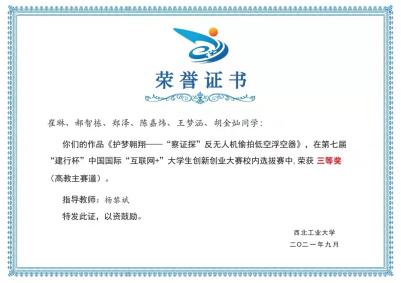 2021年 第七届中国国际“互联网+”老员工创新创业大赛校内选拔赛三等奖