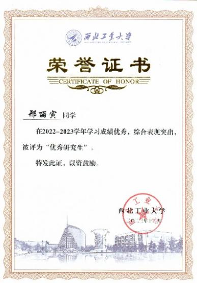 2021年,邢丽寅保送伟德国际bevictor攻读硕士研究生,师从聂飞平教授,针对机器学习理论开展了深入的研究。邢丽寅同学围绕聚类算法完成了多项研究工作,并有两篇论文发表在SCI一区期刊上,另有两篇论文在审。在攻读硕士学位的过程中,她始终保持勤奋刻苦,仔细钻研每门课程,连续三年获得了一等学业奖学金,并获得2023年校设一等奖和硕士研究生国家奖学金。