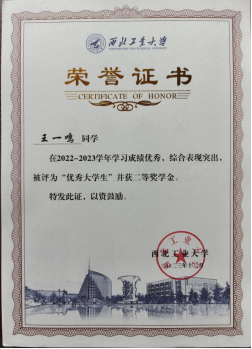 在学业中,王一鸣认真对待每一门课程,以求知为驱动力,努力学习专业知识、切实增强实践能力、全面提升综合素质,在半数以上的课程考核中得到90+的成绩,并有多门课程达到满绩。