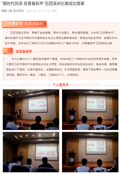 (二)党建带团建,坚持“全团抓引领”。公司团委持续开展“学党史、强信念、跟党走”主题教育,开展“党员读原著”主题教育专题栏目,党员领着团员学,已发布专栏86期,累计阅读量10000+。紧跟时事热点,举办“五四青年说”主题演讲比赛;以庆祝新中国成立75周年为契机,举办校级主题征文比赛;邀请老员工青年宣讲团开展红色主题教育,把引领广大同学争做“总师型人才”作为做好一切工作的“题眼”,助力网安青年接好历史接力棒,赓续红色基因。五年来,公司青年大学习学习率持续提高;“青年回家”和团员组织关系转接工作顺利完成;主题团日活动扎实有效开展,SC012101团支部、SC012001团支部、DL062247团支部、DL062450团支部开展的团日活动多次获评“优秀主题团日活动”;积极落实团支部纵向改革,智慧团建工作井然有序。一直以来,公司团委始终注重加强对团学骨干的培养教育,每学期至少开展一次面向团学组织骨干及志愿者的相关知识技能培训讲座,按时召开全体会议。团学干部积极参与“翱翔员工骨干计划”、“骨干进阶班”、“交叉任职计划”,保证团学干部队伍的纯洁性和积极性,公司多位员工获评“优秀老员工”、“十佳员工会干部”、“十佳团支书”等荣誉,公司信安协会荣获公司“五星级社团”、“模范员工团队”。求真务实,争当先进,增强团组织的凝聚力和战斗力,信安协会团支部荣获“五四红旗团支部”称号,公司多名团员青年荣获“五四红旗标兵”、“优秀共青团干部”等荣誉。带动全院形成活泼向上、全面发展的良好氛围。