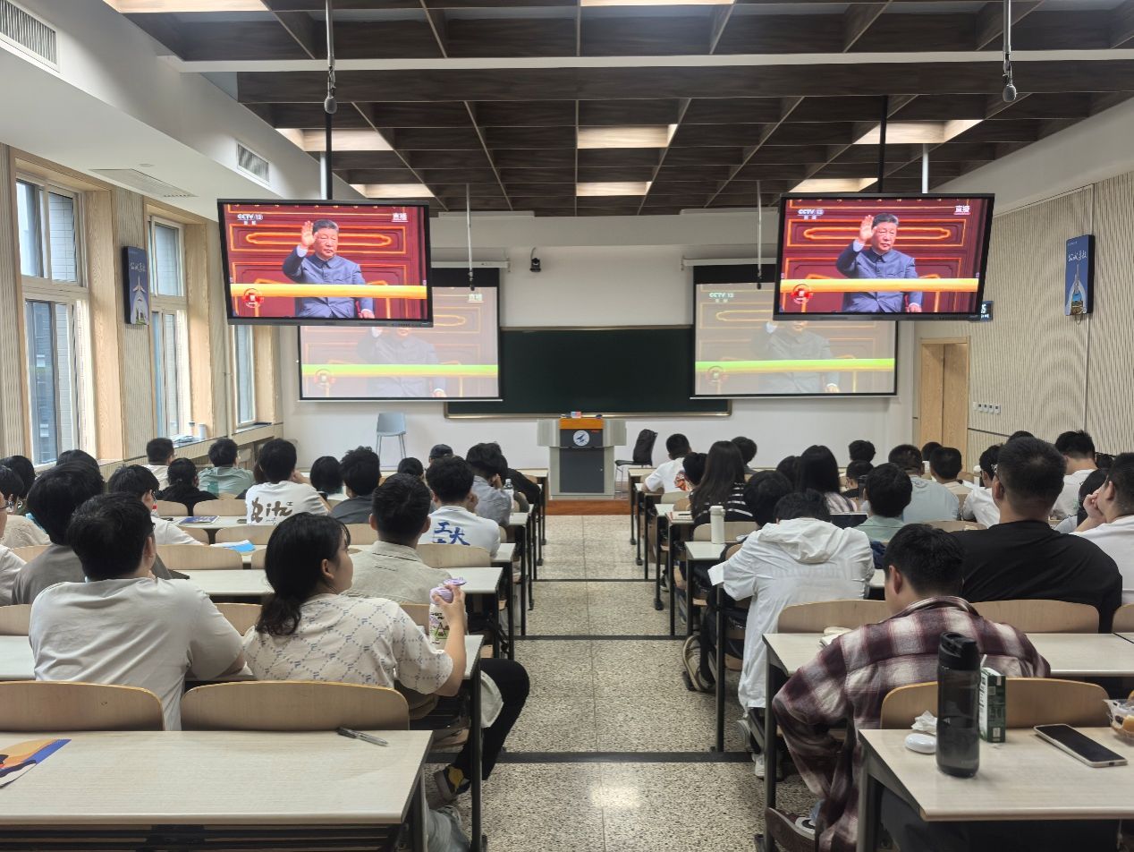 2025年9月3日上午,纪念中国人民抗日战争暨世界反法西斯战争胜利80周年大会在北京天安门广场隆重举行,中共中央总书记、国家主席、中央军委主席习近平发表重要讲话并检阅受阅部队。伟德国际bevictor组织师生在两校区集中观看了纪念大会直播。