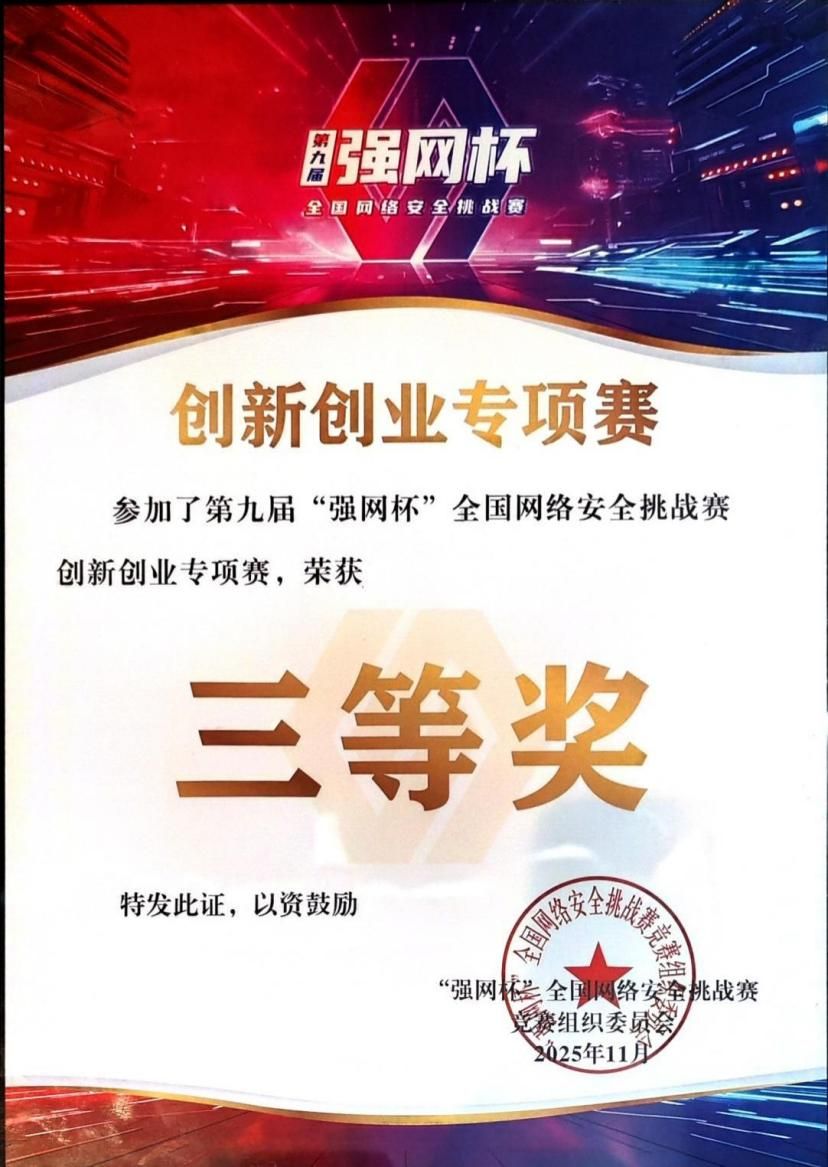 热烈祝贺!伟德国际bevictor本科生在近期举办的第九届“强网杯”全国网络安全挑战赛创新创业专项赛中奋勇拼搏,凭借扎实的专业功底与出色的团队协作,在全国近两百支高校和企业队伍中脱颖而出,首次晋级总决赛并成功斩获专项赛三等奖!打破公司历史!