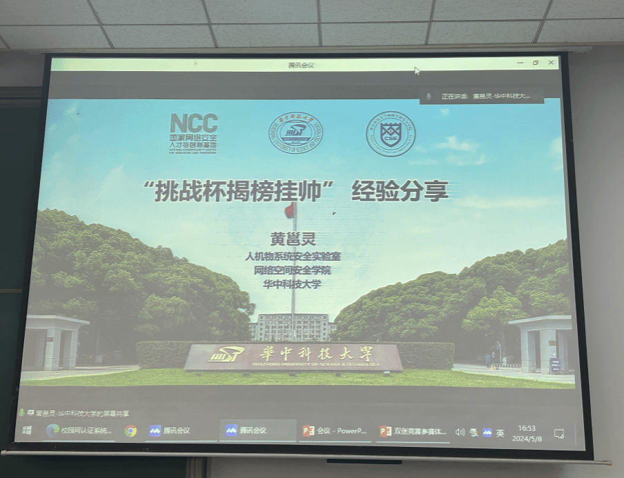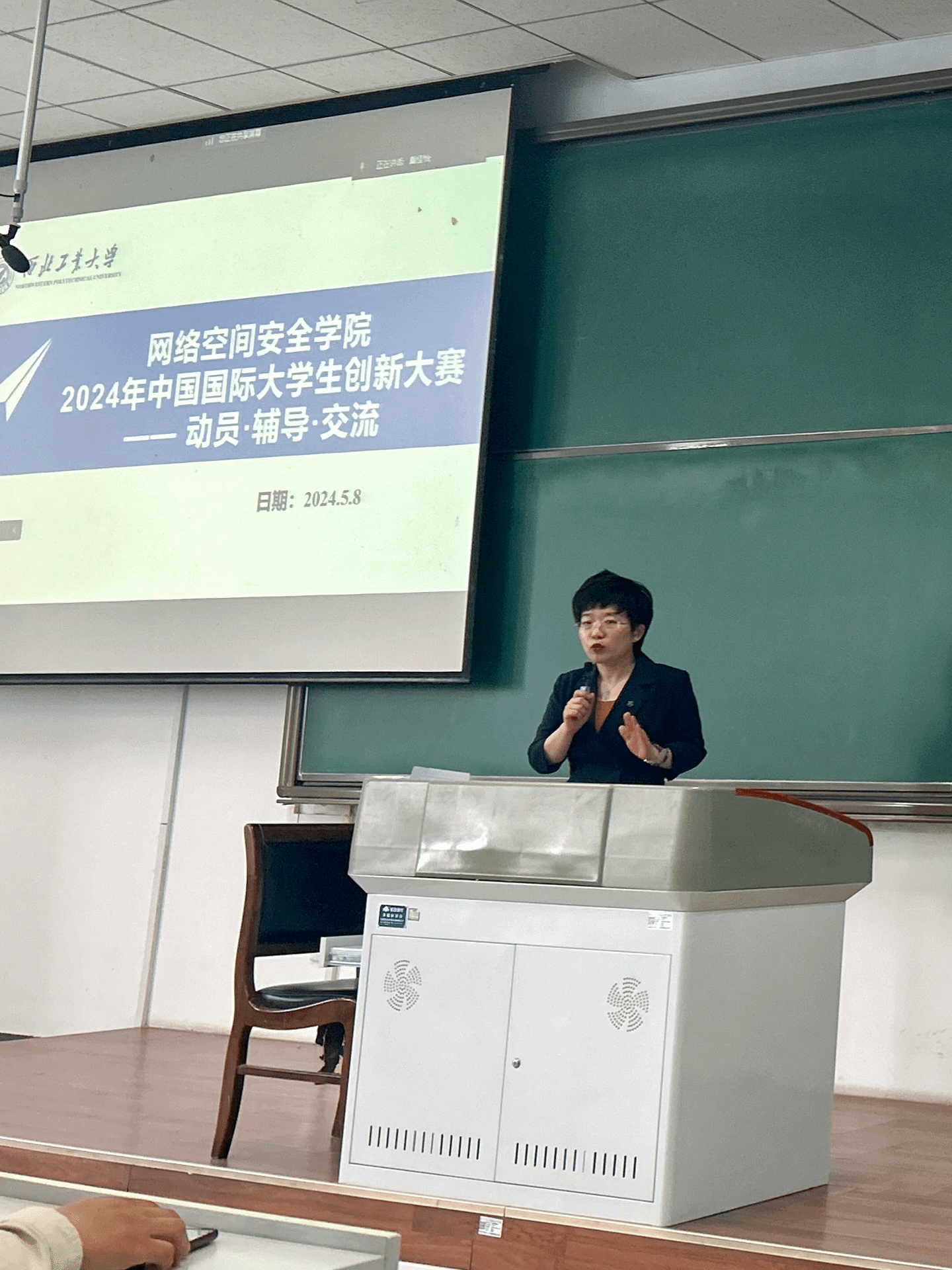 活动第三个环节,由一流网安兄弟院校的优秀竞赛选手黄邕灵和王云川与大家进行线上交流。黄邕灵是2023年“揭榜挂帅”专项赛擂主团队的负责人,她为现场同学对于揭榜挂帅的赛事进行了全面的介绍,黄邕灵讲解了揭榜挂帅赛事的流程和“擂台赛”的现场流程,她指出“揭榜挂帅”专项赛和创新大赛的区别在于后者更注重产品的商业价值,揭榜挂帅更注重技术突破和指标。王云川是2021年“互联网+”国赛银奖负责人,也是2023“挑战杯”国赛特等奖团队负责人,他现场展示了去年的特等奖案例,并结合自身分享实战经验,他提出产品的展示要配着亮点突出的背景意义,每一页ppt都应当有导入与结论。同时两位同学还与线下的师生互动交流了“如何克服畏难情绪”和不同公司的参赛鼓励政策等内容。