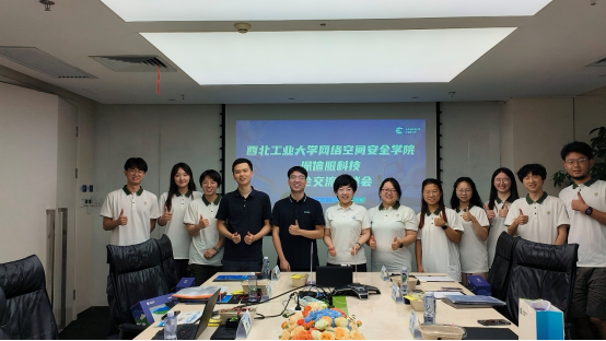座谈会上,李腾为实践队展示了深信服自研的创新性安全GPT技术,并着重强调了AI技术在网络安全领域的重要意义和广阔前景。 西工大员工张勇就深信服的招聘制度、人才培养体系等展开介绍,并为同学们提出了学习习惯养成、个人职业发展等方面的宝贵建议,帮助同学们构建更清晰的职业规划。