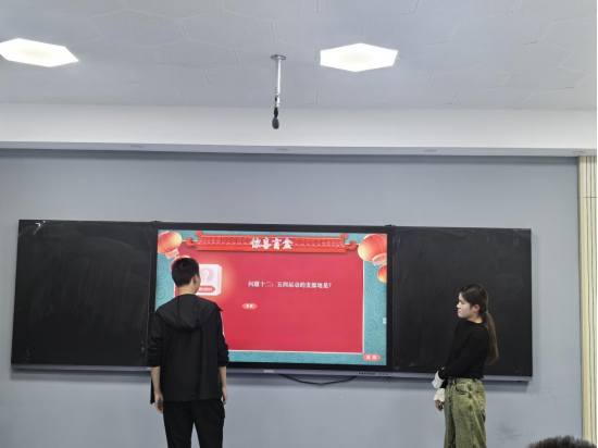 在中国的奋斗史中,总少不了光彩熠熠的篇章。或是青年为国摇旗呐喊的“五四运动”,或是工农红军不畏艰难险阻的长征之路,或是标志民族新生的开国大典……围绕这些历史大事件,班会进行了妙趣横生的“开盲盒式”有奖问答活动。在轻松的活动氛围中,同学们通过问答了解到了更多的关于历史的知识。