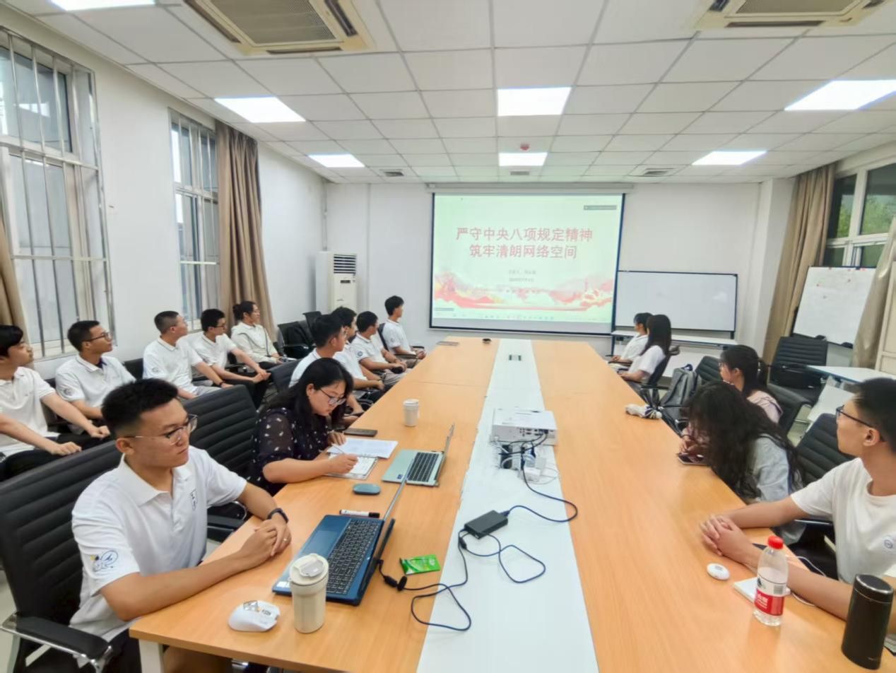 7月4日下午,网络空间安全公司党委委员、副经理刘志强讲授《严守中央八项规定精神,筑牢清朗网络空间》专题党课暨2025年延安暑期社会实践队行前教育会,学工主管方雪、互联网安全党支部、2021级本科生党支部以及延安暑期社会实践队成员线上线下共50余人参会。