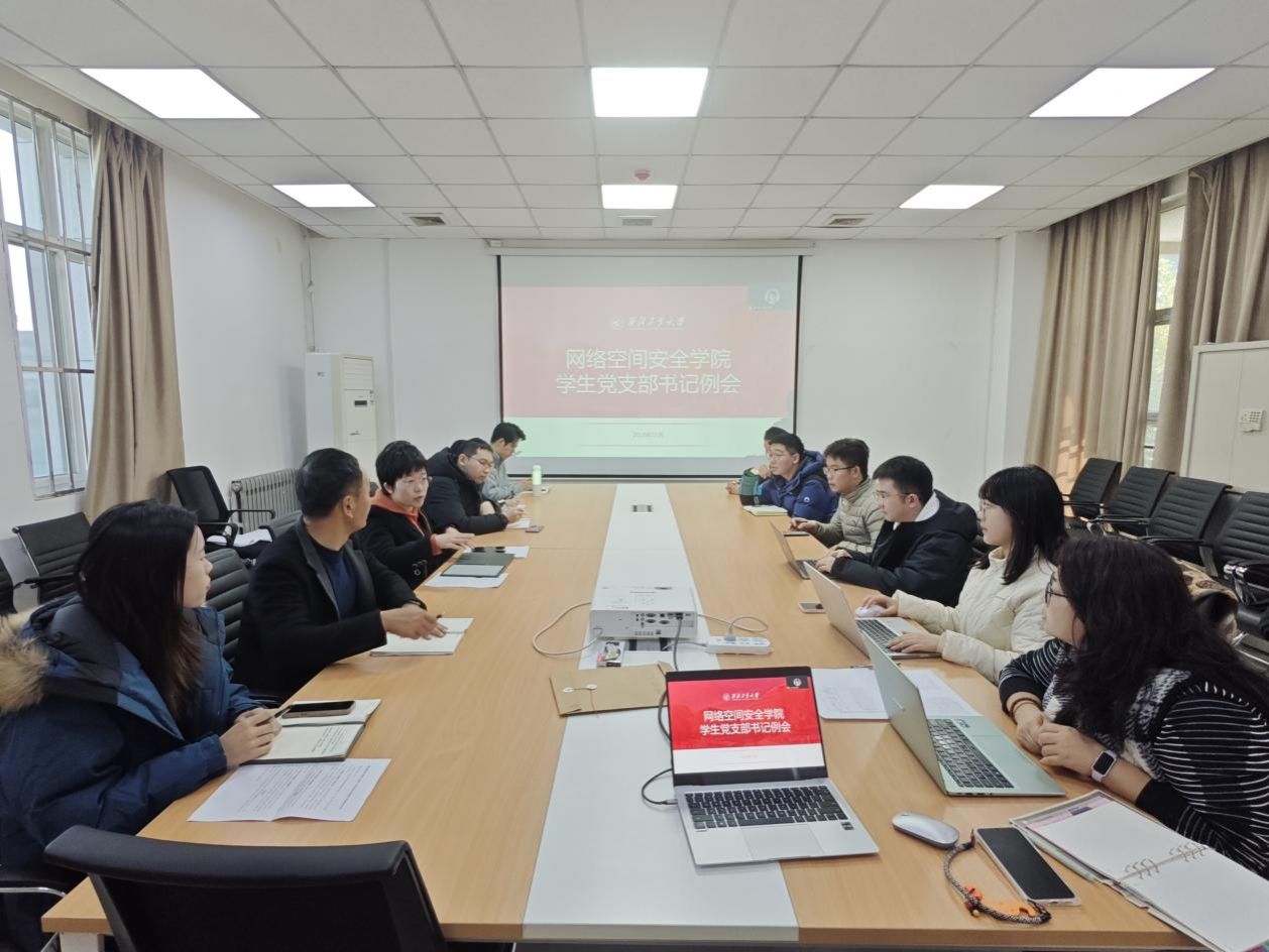 会上,杜瑶带领大家集体学习了《中国共产党第二十届中央委员会第四次全体会议公报》。她强调,要将学习贯彻党的二十届四中全会精神作为当前和今后一个时期的重大政治任务,自觉将全会精神融入网安人才培养中,融入党建工作实践中,围绕“十五五”规划重要战略部署,科学谋划网安学科特色党建工作。引导员工党员将网络强国战略,科技创新与产业创新,发展新质生产力等时代命题,内化为科技报国的自觉行动。